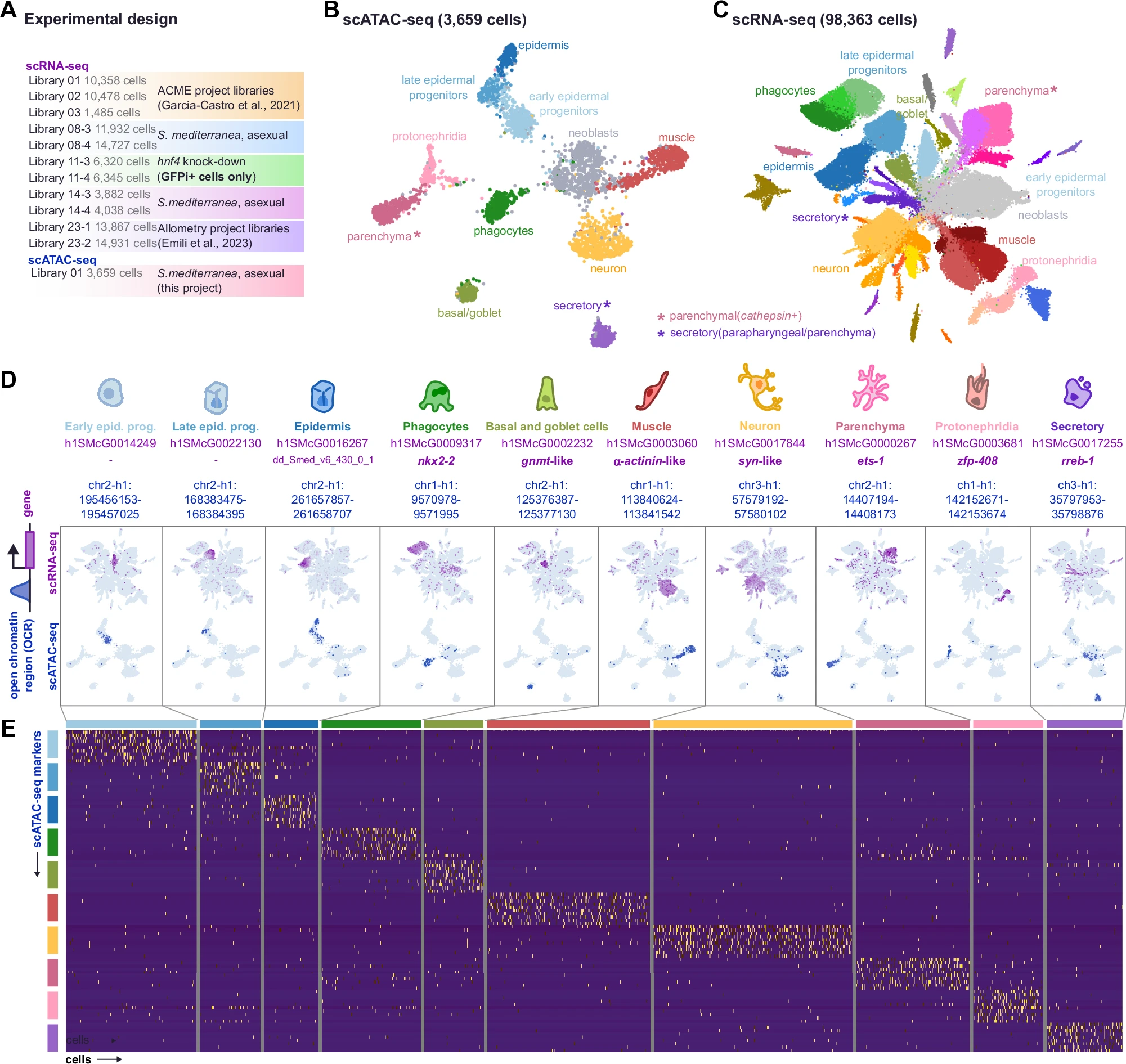 Multimodal single cell analyses reveal gene networks of planarian stem cell differentiation. Pérez-Posada A, García-Castro H, Emili E, Guixeras-Fontana A, Vanni V, Salamanca-Diaz D, Arias-Baldrich C, Frölich S, van Heeringen SJ, Cebrià F, Kenny N, Solana J. Nat Commun. 2025. 16(1):10683.